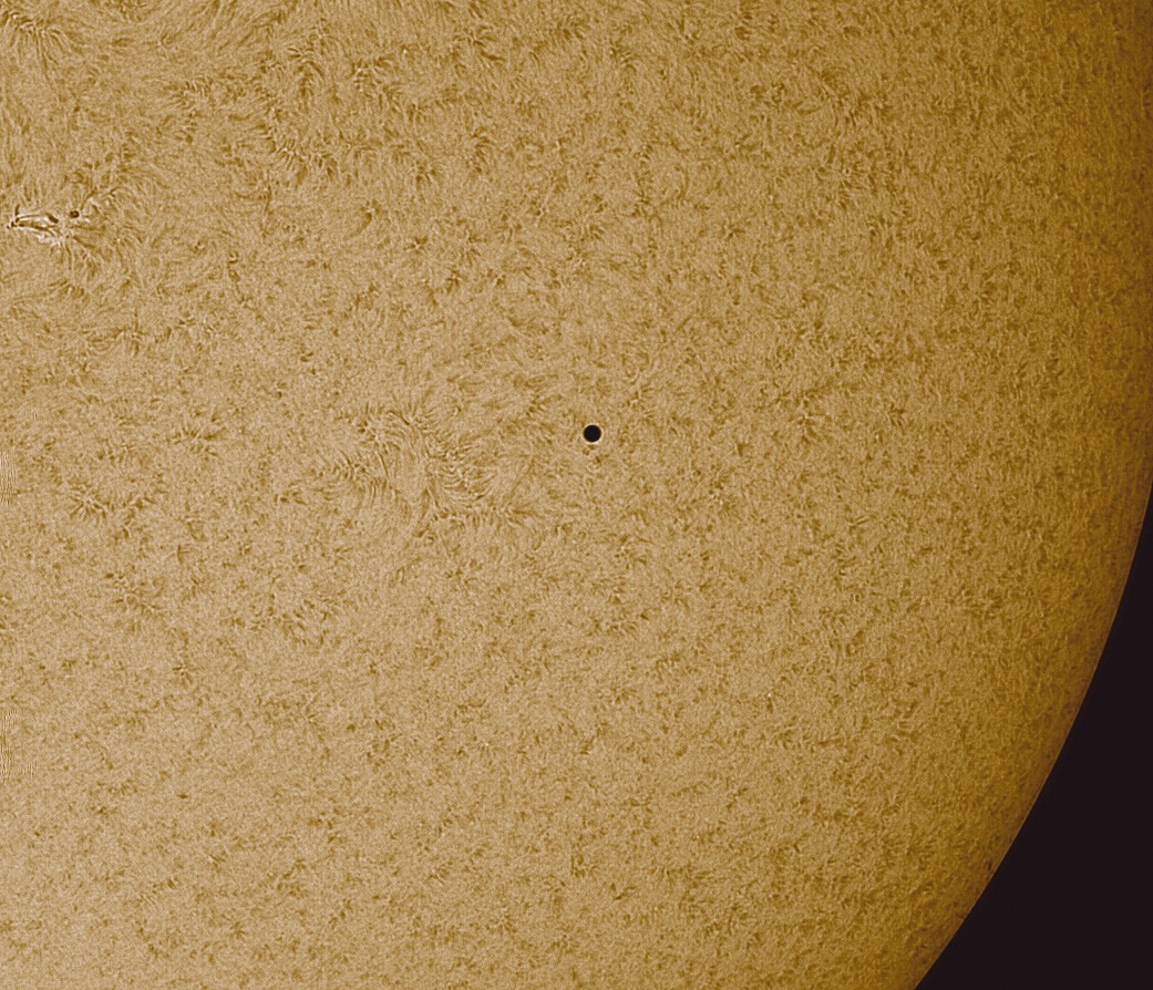 Merkurtransit vom 09.05.2016, Objektiv: Skywatcher Esprit-80ED, Kamera: ZWO ASI 120MM-S, Filter: Daystar Instruments QUARK - H-Alpha Chromosphere.